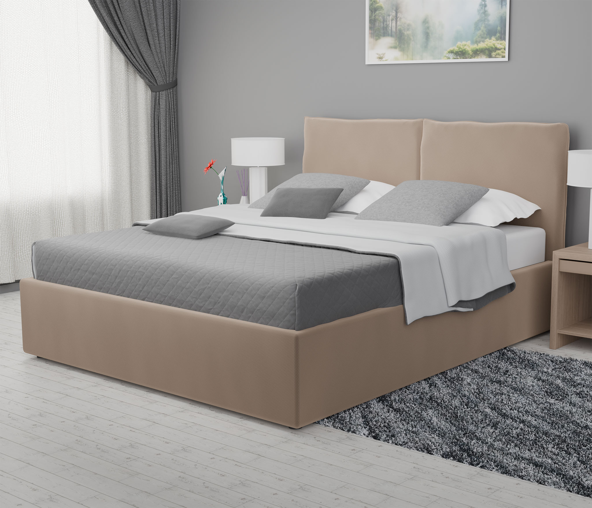 Высокие двуспальные кровати