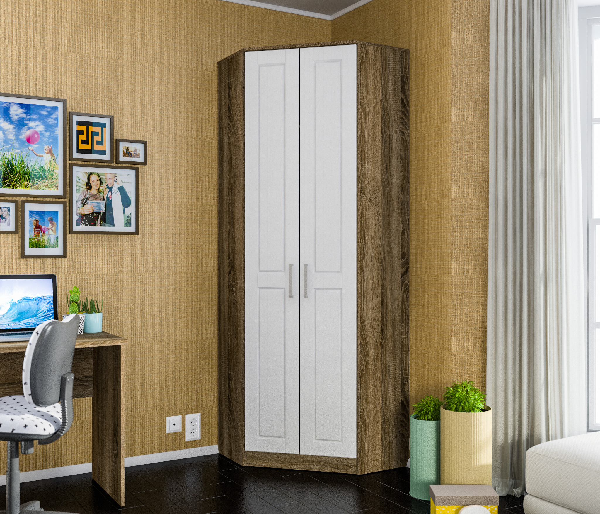Шкаф угловой Мамбо СБ-2678 (Дуб Сонома/Белый)