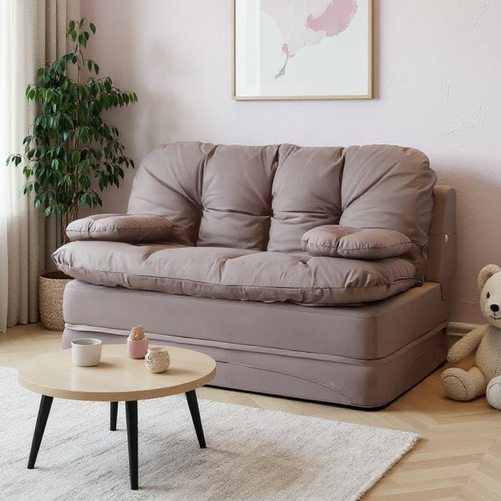 Мы не доставляем наш товар в вакуумной упаковке. Вес всего 30 кг. Это позволит Вам без усилий поднимать и передвигать маленький бескаркасный трансформер при уборке. Легкость даст возможность перемещать малогабаритный диван-кровать в разные помещения например спальню или на кухню. Благодаря отсутствию твердых элементов в конструкции софа безопасна для ребенка и идеально впишется в детскую комнату.