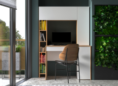 Стол компьютерный Комфорт 12.71 — мини-кабинет для комфортной работы дома или в офисе. Конструктивно стол состоит из большой столешницы, выдвижного ящика и тумбы под ней, шкафа-стеллажа и надстройки. Все элементы гармонично дополняют друг друга, составляя удобное рабочее место, занимающее небольшую площадь. На столешнице достаточно места для размещения учебных и рабочих принадлежностей, ноутбука или монитора. Также, на столешнице имеется пластиковая заглушка для протягивания проводов от техники к источнику питания. Под столешницей в центре размещен выдвижной ящик для канцелярии, а справа размещена закрытая распашной дверкой ниша, размеры которой позволяют расположить в ней системный блок компьютера стандартной величины. Шкаф-стеллаж, расположенный слева, имеет глубину меньше, чем столешница, и состоит из нескольких открытых полочек. Со столом стеллаж совмещается при помощи надстройки, представленной в виде горизонтальной и вертикальной закрытых дверками ниш. На открытых полочках Вы можете расположить документацию, учебные материалы, книги, журналы, предметы декора или игрушки. Предметы, которые необходимо скрыть от посторонних глаз, можно разместить в закрытых нишах. Стол компьютерный изготовлен на компьютеризированном оборудовании из современных материалов высокого качества. Ламинированная ДСП имеет толщину 16 мм, торцы деталей закромлены пленкой ПВХ. Подъемная дверка закреплена на газлифте, распашная – на четырехшарнирных петлях, ящик – на роликовых направляющих, ручки на фасадах пластиковые. При поставке стол разобран, надежно упакован, к изделию приложена подробная инструкция по сборке и необходимая фурнитура.
