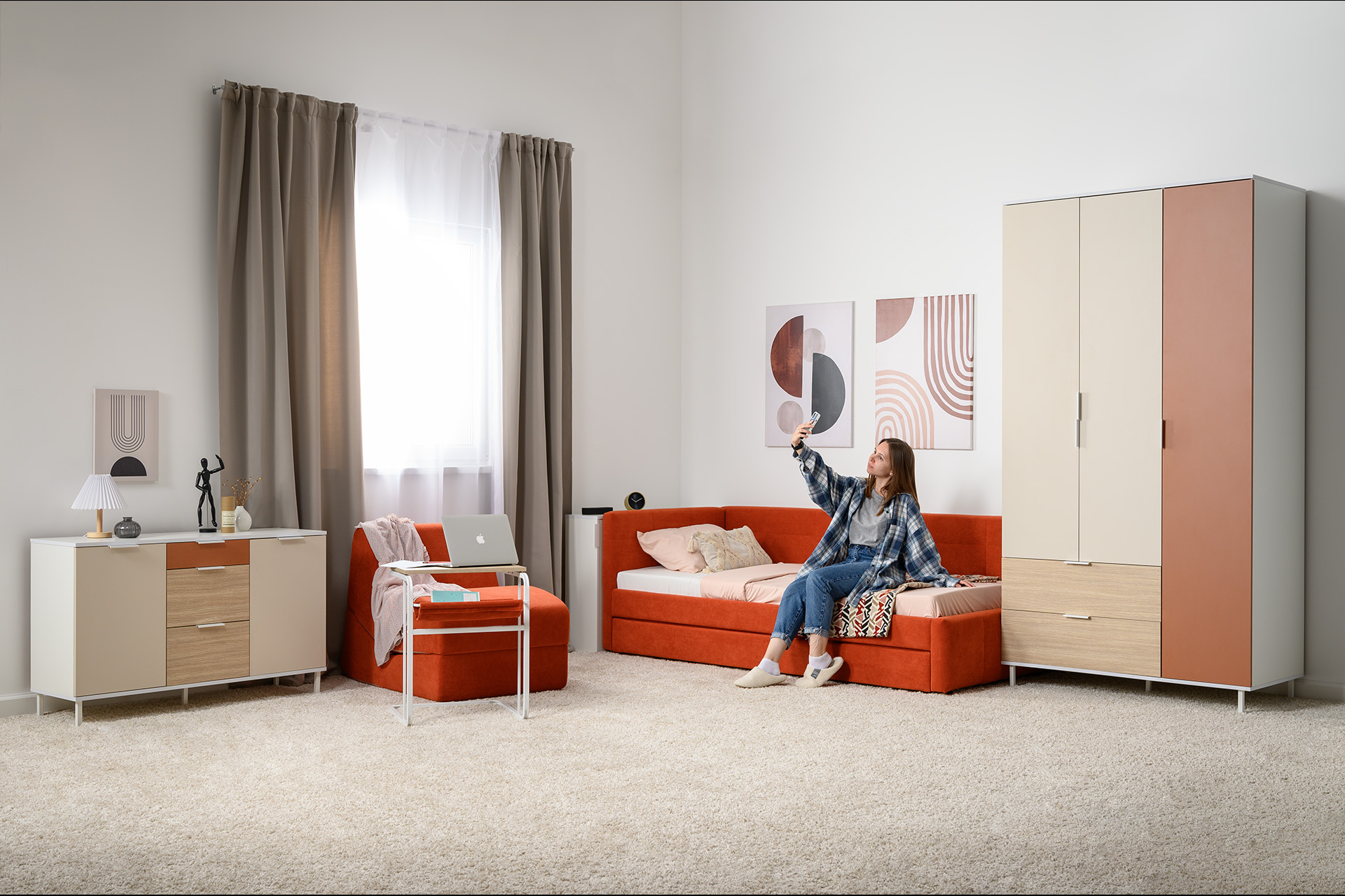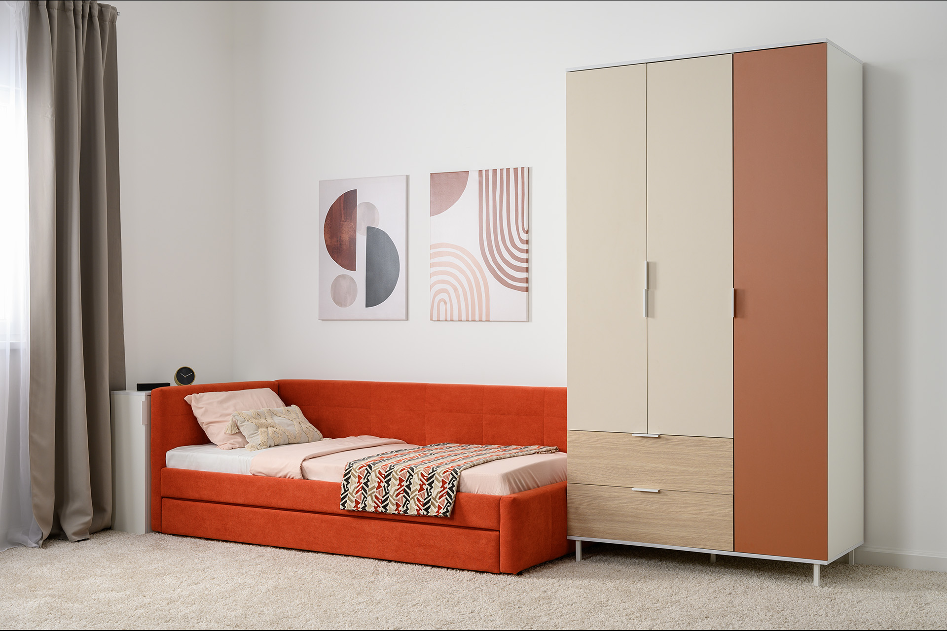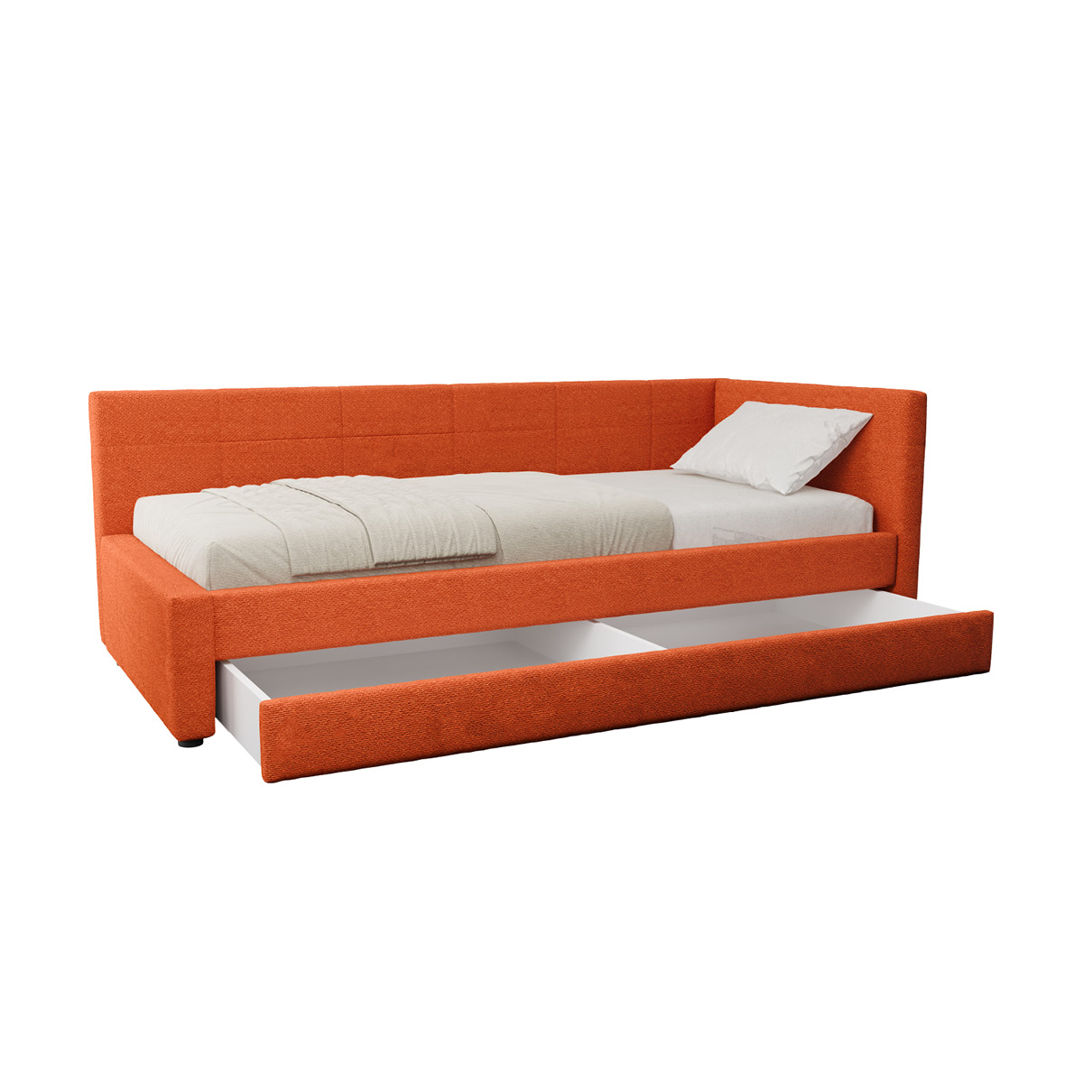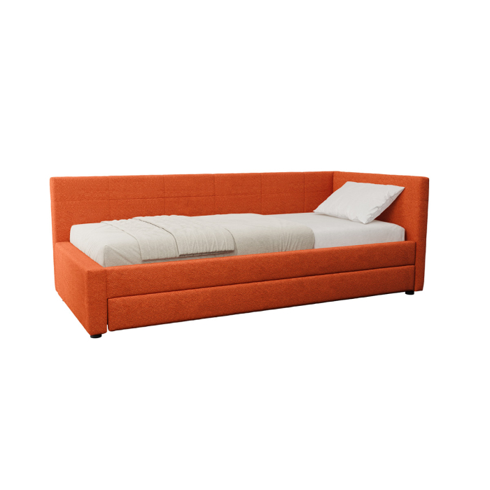 Односпальная кровать-тахта Марвел 90 с мягкой обвикой в терракотовом оттенке — прекрасное решение для современной и яркой комнаты для подростка или ребенка.