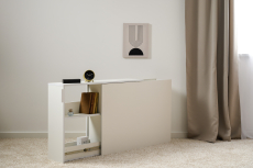 Высокая, узкая тумба Марвэл 16.159 дополнит интерьер гостиной или спальни. Тумба с глубокими выкатными полками на направляющих полного выдвижения, и скрытым ящиком для мелочей. Изделие установлено на пластиковые регулируемые подпятники, колесики для мягкого выдвижения.