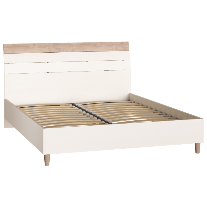 Конструкция с одной большой головной спинкой. В комплекте ортопедическое основание на основе деревянных ламелей.