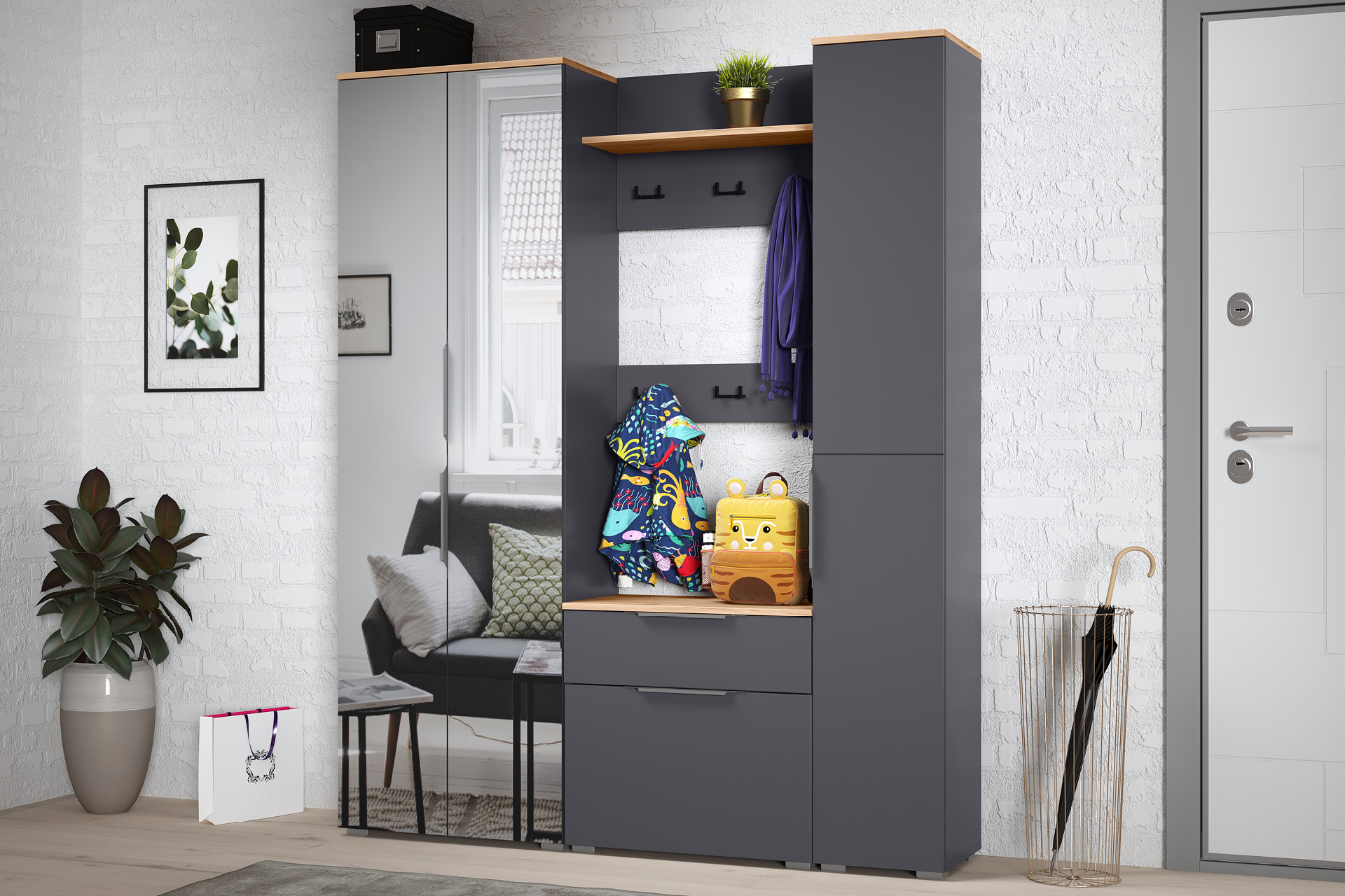 Отзывы о Столплит Вешалка Октава 15.14.02, серый графит, дуб золотой крафт