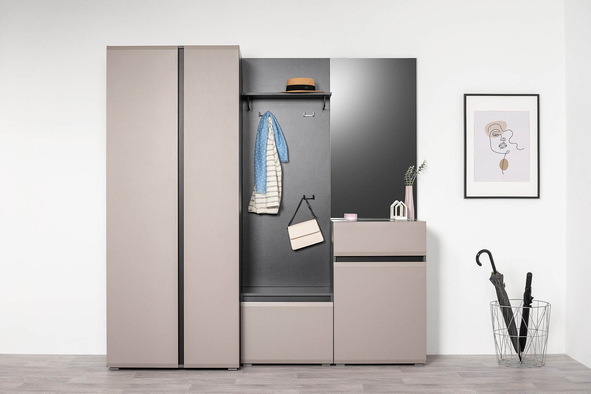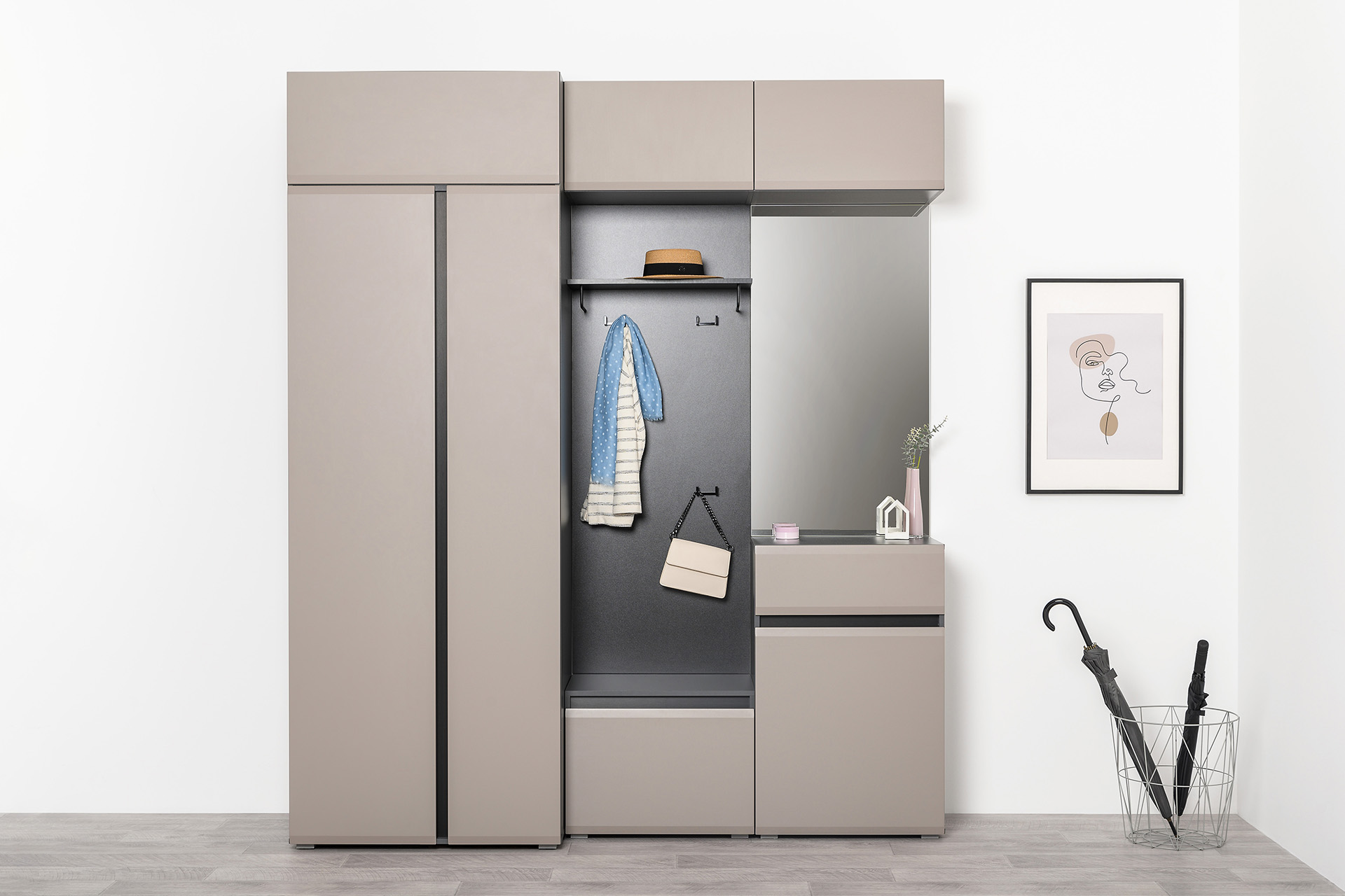 Настенная вешалка Сидней 15.16 из модульной линейки мебели для прихожей.