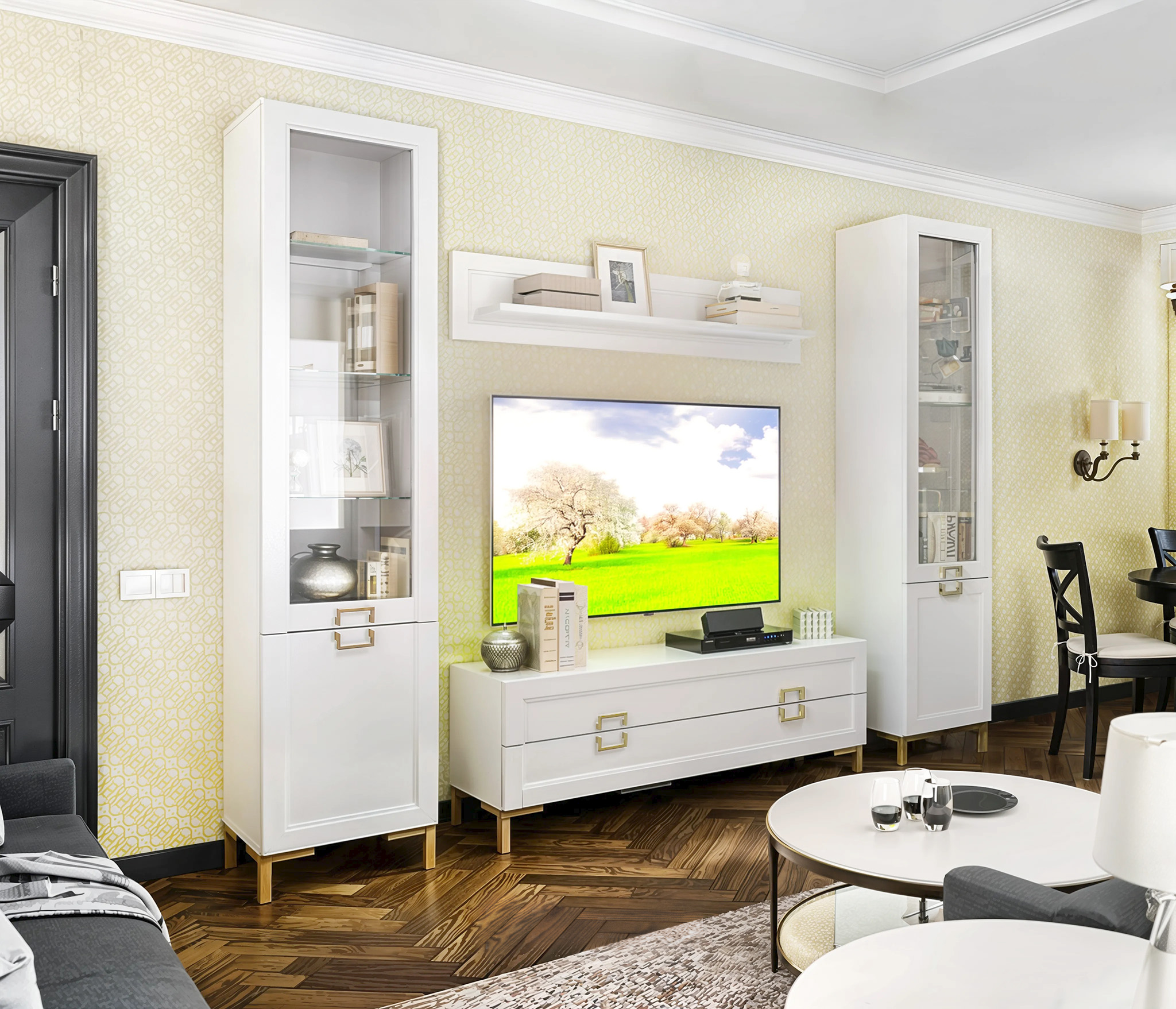 Комплект для гостиной с витринами Ассоль, Белый Код 00000336482