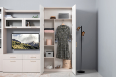 Петли с доводчиками, полное выдвижение ящиков, выдвижная штанга в шкафу для одежды и съемные полки делают использование максимально комфортным.
