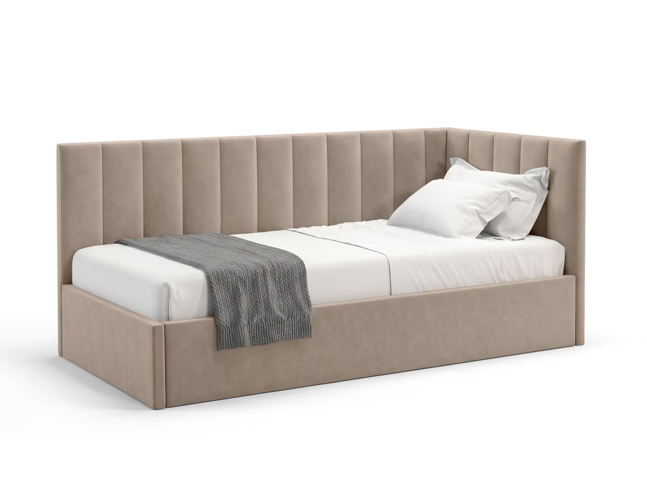 KID — больше, чем односпальная кровать. Это уют, который нравится детям, и, практичность, которую ценят родители. Мягкие линии, современная эстетика и комфортная спинка делают её идеальной для сна, отдыха и чтения. Она создана для ежедневного использования. Кровать не перегружает пространство и визуально сохраняет лёгкость в комнате. Комфортная спинка — удобно опираться во время чтения или отдыха. Размер: 2140*1050*920см (д*в*ш), спальное место (размер матраса): 90×200 см — оптимальный формат для ребёнка и подростка, который растёт, а, также, для отдыха взрослого человека, для гостевой комнаты. Подъёмный механизм: есть. Прочная сварная ортопедическая решетка. Бельевой ящик: есть. Опоры: пластик. Каркас: брус/фанера/ДСП. Наполнение каркаса и спинок: ППУ. Ткань - велюр с трендовой цветовой палитрой. Угол универсальный (право/лево). Задняя стенка изголовья выполнена из технической ткани. Качество материалов: в конструкции используются качественные материалы и надёжные элементы, рассчитанные на активную ежедневную эксплуатацию, чтобы кровать сохраняла форму и комфорт в течение долгого времени. Матрас приобретается отдельно, с необходимыми свойствами (пружинный, безпружинный, с нужным уровнем допустимой нагрузки, жесткостью, наличием нужных слоев), рекомендуемая высота - 21-23 см. Комплектация: 3 пакета. Вес - 69 кг.