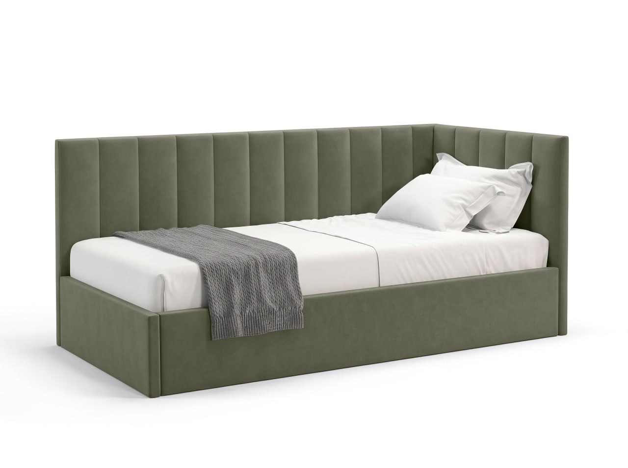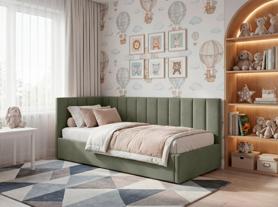 KID — больше, чем односпальная кровать. Это уют, который нравится детям, и, практичность, которую ценят родители. Мягкие линии, современная эстетика и комфортная спинка делают её идеальной для сна, отдыха и чтения. Она создана для ежедневного использования. Кровать не перегружает пространство и визуально сохраняет лёгкость в комнате. Комфортная спинка — удобно опираться во время чтения или отдыха. Размер: 2140*1050*920см (д*в*ш), спальное место (размер матраса): 90×200 см — оптимальный формат для ребёнка и подростка, который растёт, а, также, для отдыха взрослого человека, для гостевой комнаты. Подъёмный механизм: есть. Прочная сварная ортопедическая решетка. Бельевой ящик: есть. Опоры: пластик. Каркас: брус/фанера/ДСП. Наполнение каркаса и спинок: ППУ. Ткань - велюр с трендовой цветовой палитрой. Угол универсальный (право/лево). Задняя стенка изголовья выполнена из технической ткани. Качество материалов: в конструкции используются качественные материалы и надёжные элементы, рассчитанные на активную ежедневную эксплуатацию, чтобы кровать сохраняла форму и комфорт в течение долгого времени. Матрас приобретается отдельно, с необходимыми свойствами (пружинный, безпружинный, с нужным уровнем допустимой нагрузки, жесткостью, наличием нужных слоев), рекомендуемая высота - 21-23 см. Комплектация: 3 пакета. Вес - 69 кг.