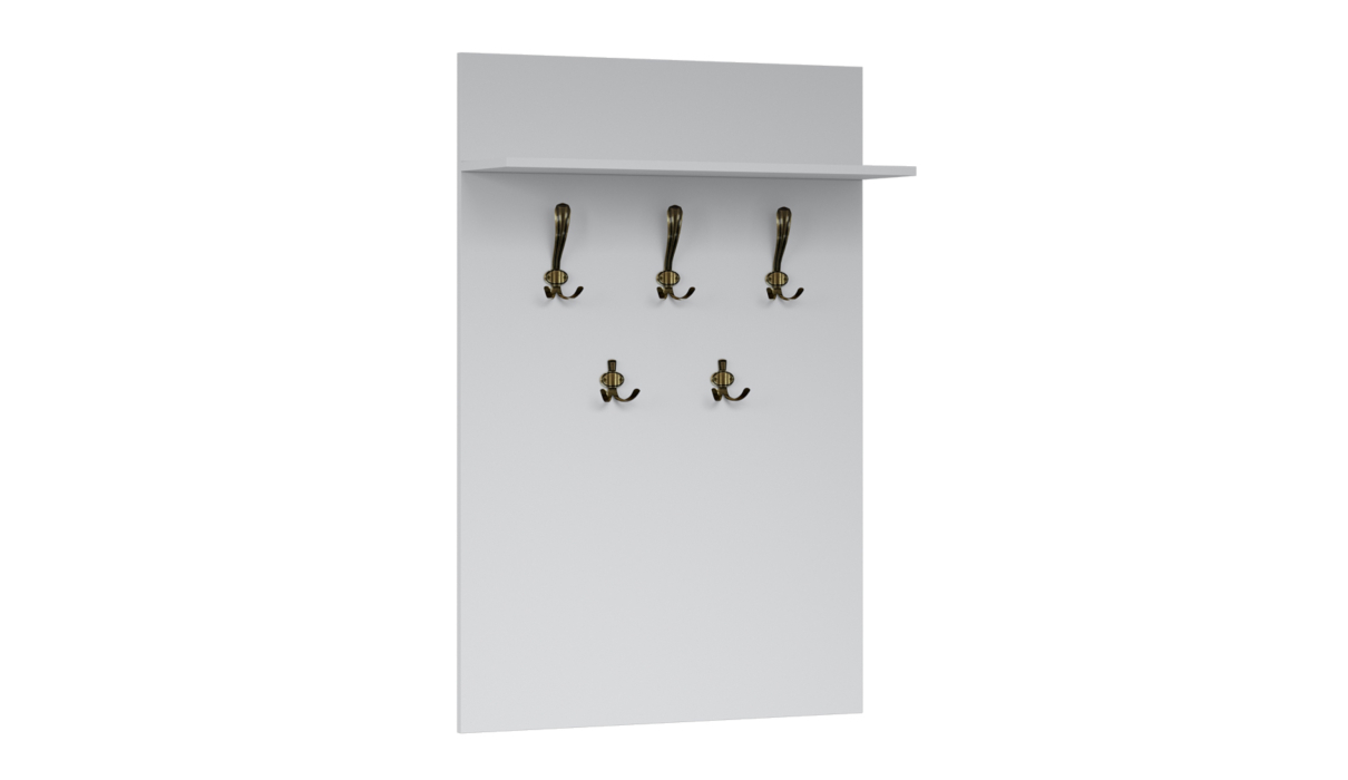 Элегантная вешалка «Лацио» — идеальное решение для тех, кто ценит стиль и порядок в интерьере. Выполненная в утончённом неоклассическом дизайне, она гармонично впишется в любую прихожую. Ширина 60 или 80 см позволяет выбрать модель, подходящую именно вам. Пять надёжных крючков выдерживают даже тяжёлую верхнюю одежду, а удобная полка сверху отлично подойдёт для хранения шапок, шарфов или декоративных элементов. Выполнена из экологически безопасных материалов.