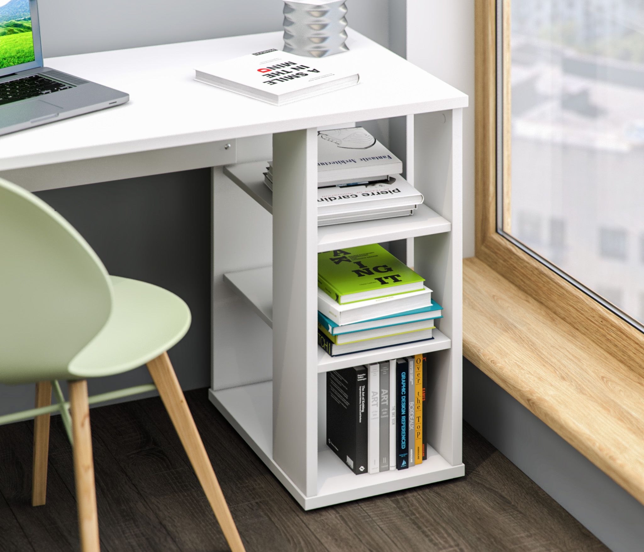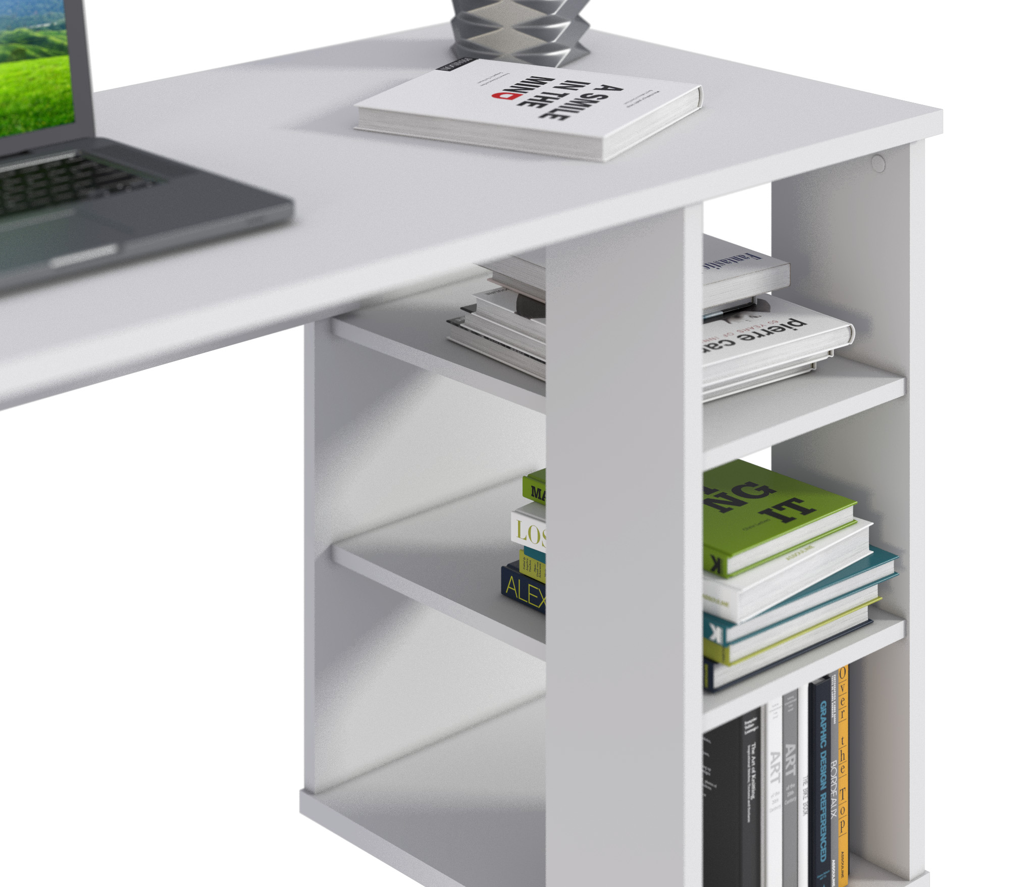 Стол Медея СБ-2877 – компактное и комфортное рабочее место. Такой стол не займет много места в комнате студента или школьника, а также будет органично смотреться в кабинете или офисе. Габаритные размеры стола Медея – ширина 119 см, высота 75 см и глубина 59 см. Под рабочей поверхностью расположена одна открытая тумба с тремя вместительными полками. Произведен стол из экологичного современного КДСП. Цвет отделки – белый.