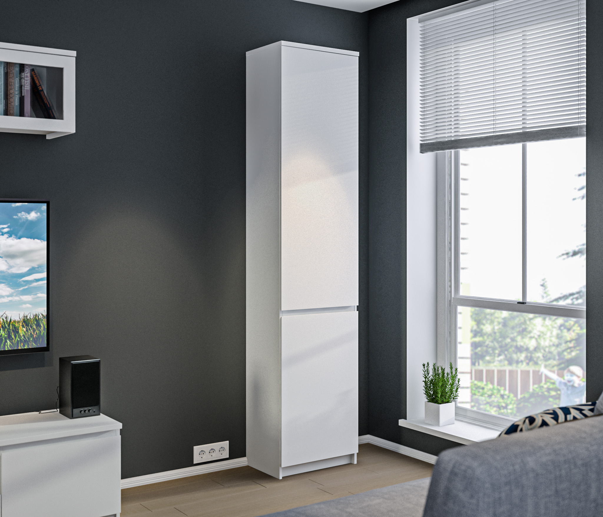 Компактный пенал Веста СБ-2249 решит вопросы, связанные с хранением. Пенал будет уместным в интерьере прихожей, спальни, кабинета или детской комнаты. При скромных габаритных размерах – ширина 50 см, высота 222 см и глубина 35 см, пенал довольно вместительный. Визуально его можно разделить на два отделения. Каждое отделение имеет свою дверцу. Верхнее отделение имеет четыре, а нижнее две вместительны полки. Книги, документы, сувениры и множество других нужных или памятных вещей можно удобно разместить в пенале. Корпус и фасады выполнены из современного и прочного материала КДСП. Пенал может быть автономным предметом мебели, а может быть составной частью модульного гарнитура Веста.