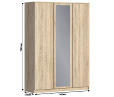 Шкаф 3-х дверный с зеркалом Веста СБ-2258 (Дуб Сонома)