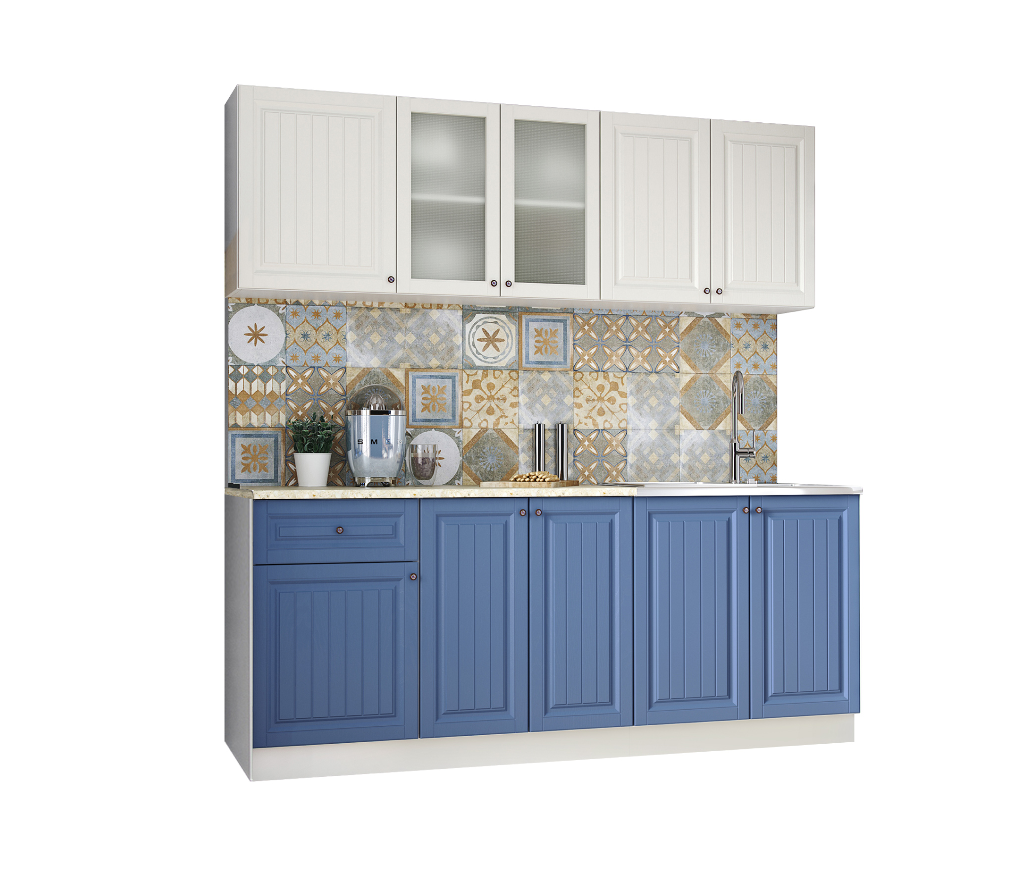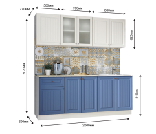 Кухня Хозяюшка 2,0 м Акация белая/Деним МДФ Код R0000244951