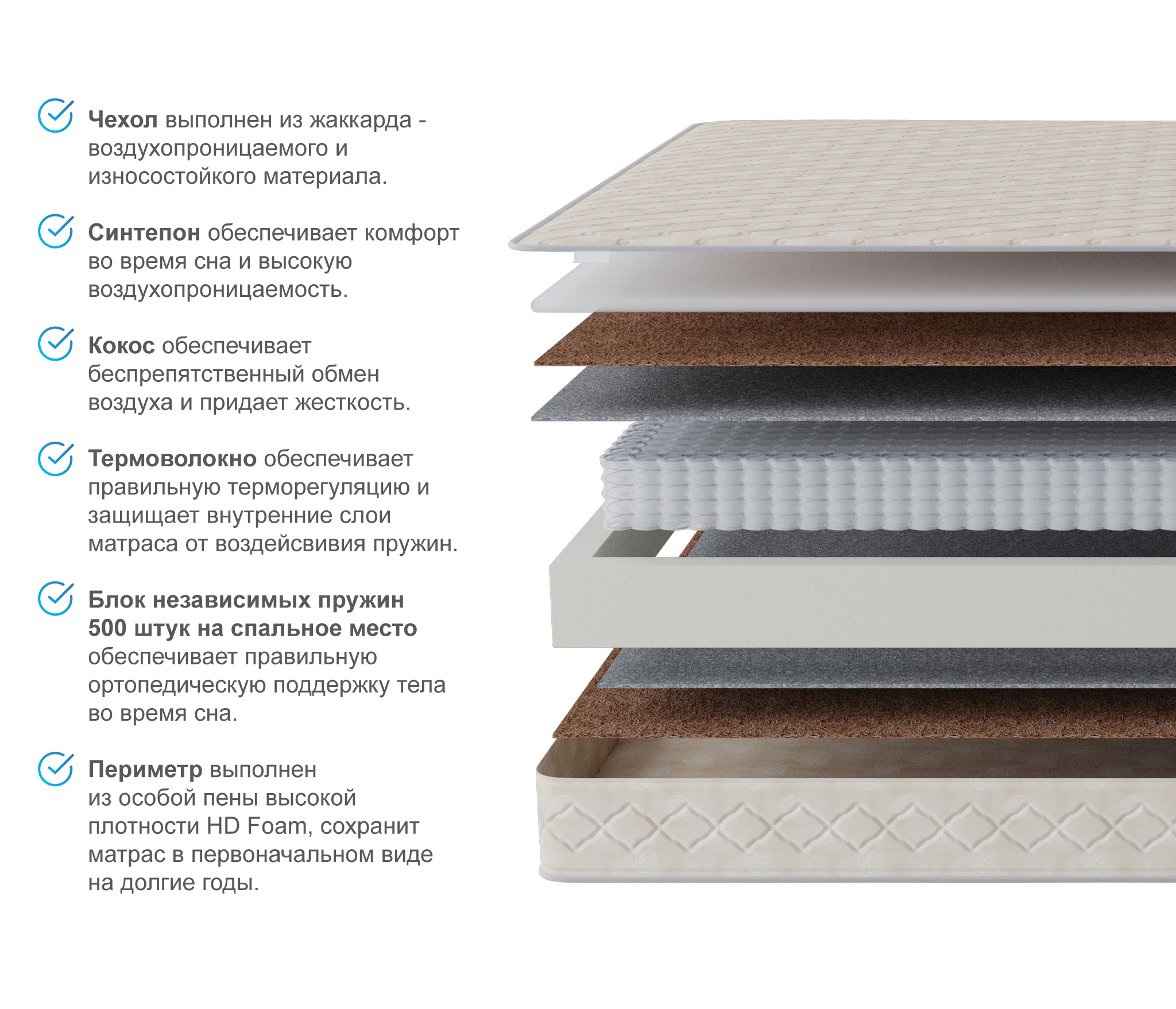 - независимые пружины - составляющие, которые способствуют правильной поддержке тела.
