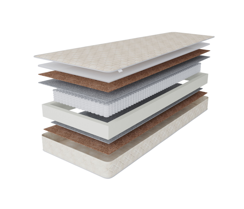 - латексированный кокос - компонент, лежащий в основе комфортного слоя. Материал помогает распределять вес пользователя и придает изделию требуемую жесткость;