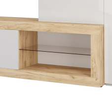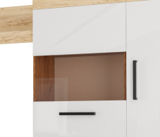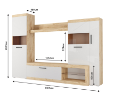 Гостиная Бастон является практичным вариантом для обустройства стильной комнаты. Открытые ниши и закрытые отделения предоставят достаточно места для размещения абсолютно всех вещей: посуды, книг и предметов декора. Для телевизора предназначена широкая зона по центру. Сочетание корпуса изделия в древесных оттенках и глянцевых фасадов со вставками из стекла делают мебель яркой и современной.