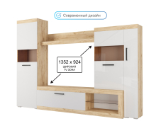 Стенка отличная, не громоздкая, современная, все в ней есть и тумба под телевизор, и шкафчики для книг, и полочки для мелочей. Доставили без задержек, упакована хорошо