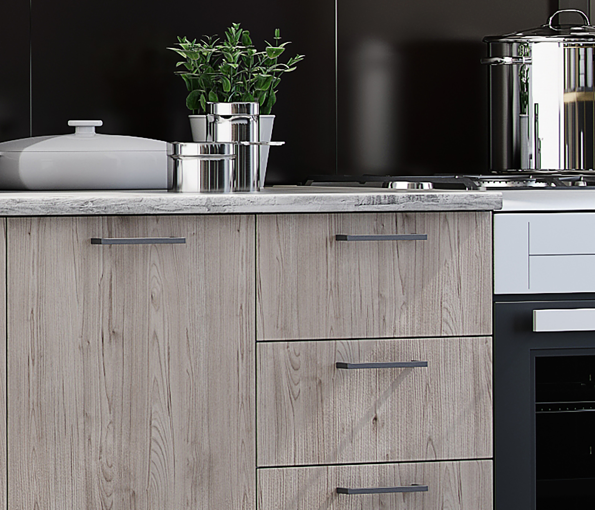 Цвет: верх фасадов - Графит софт, низ фасадов - Дуб Галиано, цвет корпуса - Белый.