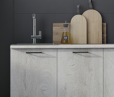Материал фасада - МДФ. Верх фасадов - Морская волна софт, низ фасадов - Дуб седой.