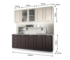 - два верхних шкафа по 800мм и один шкаф на 400 - общая ширина 2000мм Высота 706мм. Глубина 290 мм.
