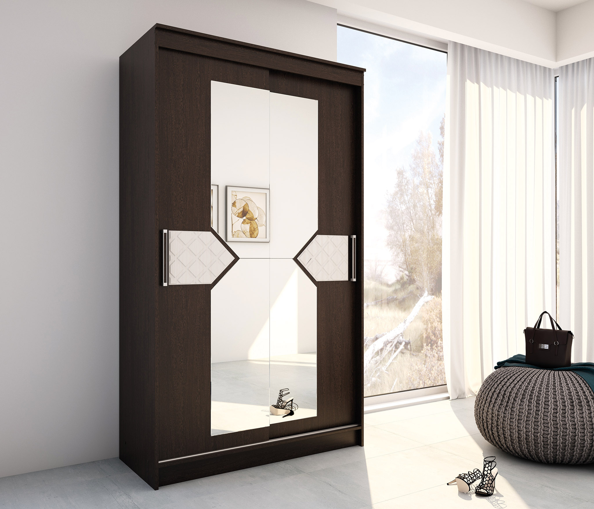 Кровать Николь — серия кроватей в современном дизайне. Модель изготовлена из ЛДСП, Дуб венге/Ясень шимо светлый + декоративные вставки из контрастного по цвету материала. Кровать укомплектована 2 выдвижными ящиками и настилом ДСП в основании спального места. Матрас в комплект не входит, его необходимо приобрести отдельно.