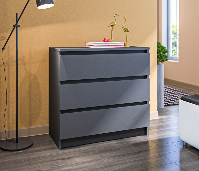 Комод для вещей Леон СБ-3287 лаконично разместится в любом интерьере. Удобный дизайн небольшого размера, 75х78х45 см, не займет много места в комнате. Комод представлен в современных и органичных цветах. Поставьте комод в детскую комнату, используйте для игрушек, в спальню или в гостиную - для одежды, модель подойдет даже для ванной комнаты, чтобы уютно расположить и оставить буквально под рукой все банные принадлежности: полотенца, технику, косметику и бытовую химию. Комод с ящиками выполнен из ЛДСП: прочного и долговечного материала, который устойчив к механическим повреждениям. Мебель дополнена тремя вместительными ящиками, надежными механизмами открывания, а отсутствующие ручки делают модель более органичной и лаконичной.