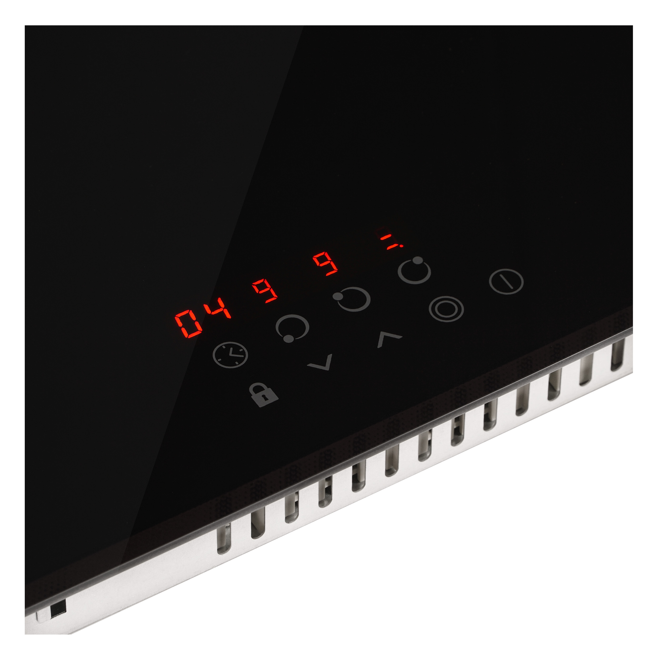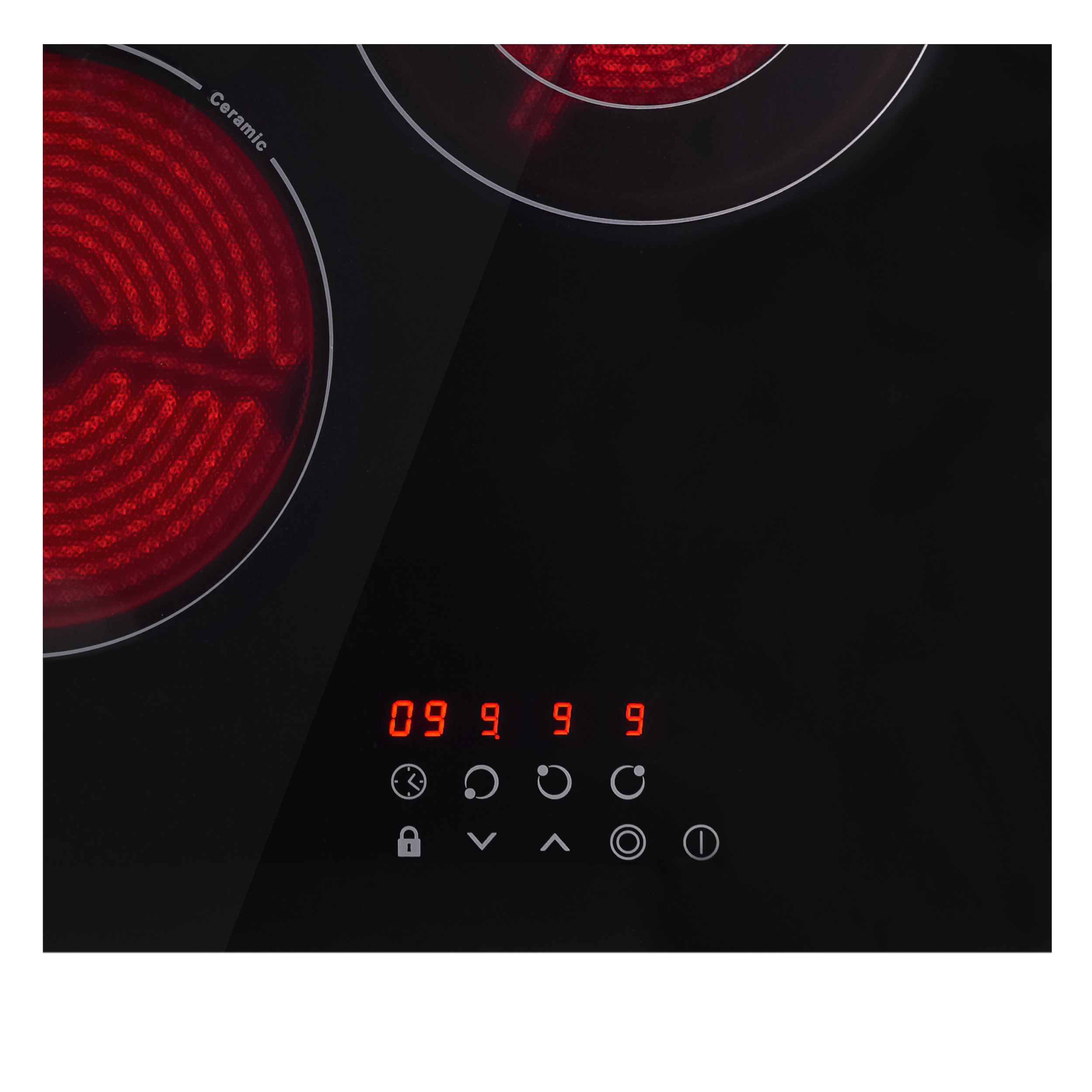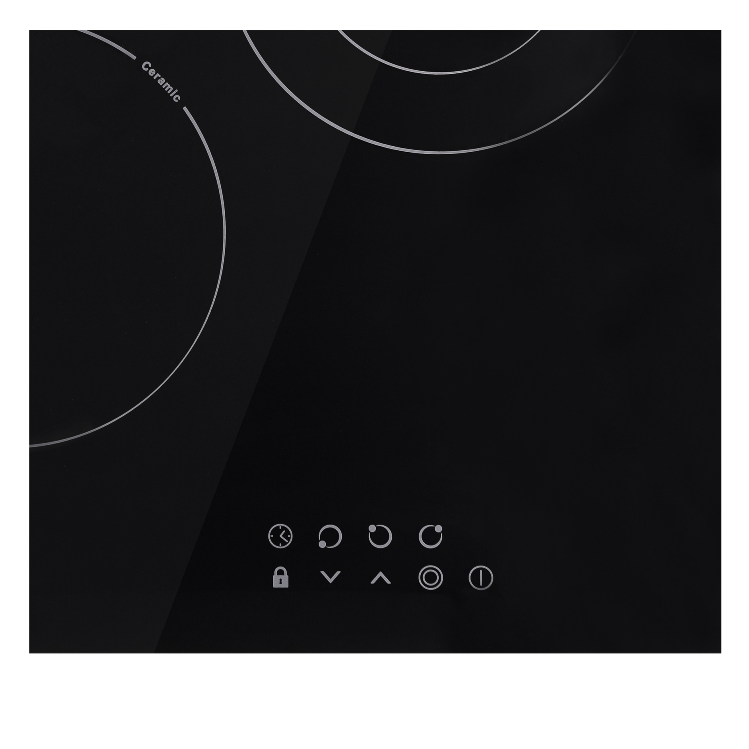 Варочная панель электрическая, стеклокерамика, Hi Light, 45 см, 3 конфорки, сенсорное управление, 9 уровней мощности, таймер 1-99 мин, блокировка управления, защитное отключение, двухконтурная, 5000 Вт, черное стекло, 450х520х50 мм.