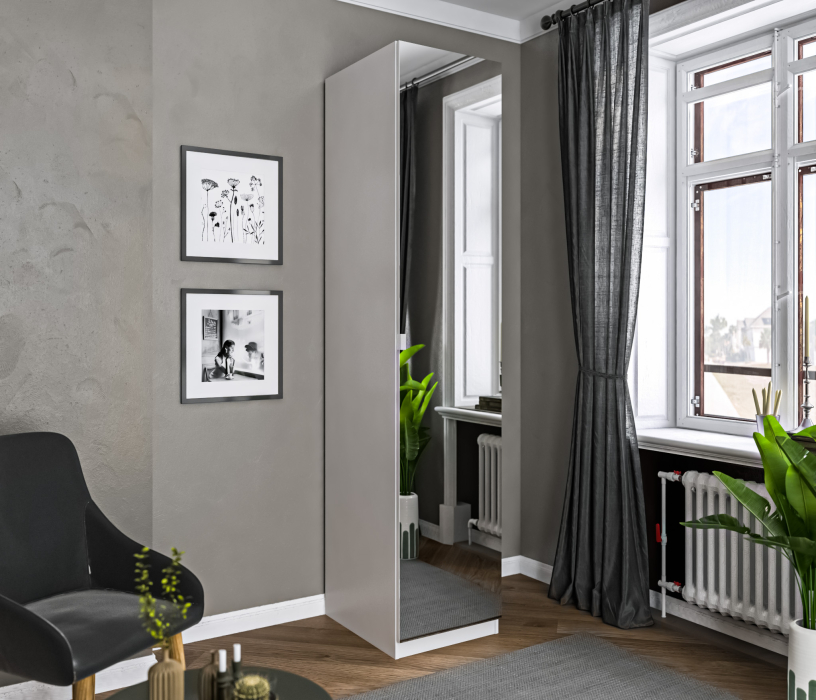 Макс СБ-3220 Каркас гардероба 500 БелыйМакс СБ-3226 Дверь ДСП с зеркалом Диамант серый
