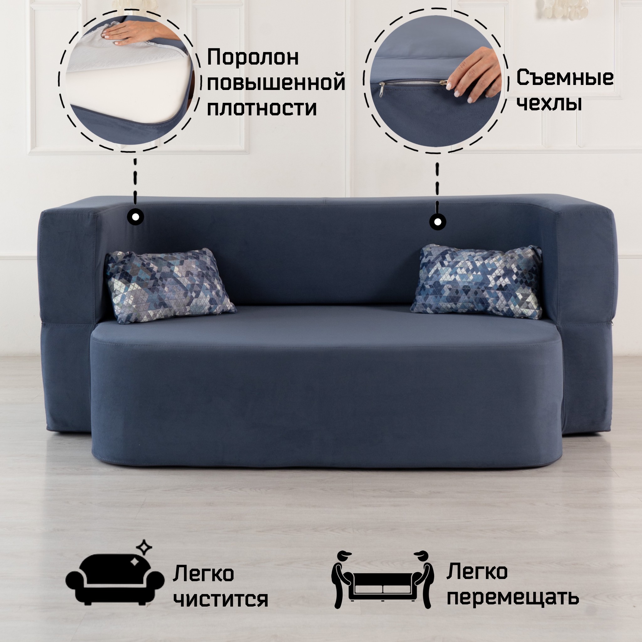 Велюр имеет износостойкость — 50 000 циклов по тесту Мартиндейла, что более чем вдвое превышает стандартные требования. Обивка выполнена из качественных материалов, которые легко чистятся и не выцветают со временем.