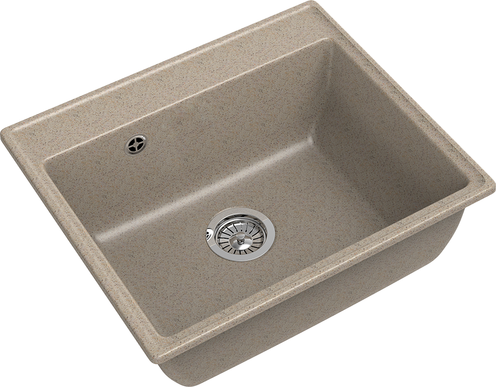 Дизайнерская модель GranFest выполнена из композитного материала, в основе которого лежит мраморная крошка и базальтовое волокно, что обуславливает повышенную прочность и долговечность. Благодаря защитному слою гелькоута, мойка не покрывается налетом и не распространяет неприятных запахов. Оригинальная чаша, в форме правильной усеченной пирамиды, с легкостью позволяет разместить внутри крупногабаритную посуду и промывать ее без лишних усилий. Глубина чаши считается оптимальной для кухонных моек. Готового отверстия под смеситель нет. Но предусмотрена площадка для его установки в удобном для вас месте. Кухонная мойка комплектуется сливной арматурой и гарантийным талоном, который одновременно является инструкцией по уходу и эксплуатацией за изделием. Тип исполнения мойки - одначашевая. Гарантия на мойку -2 года. Основные параметры мойки: - Габаритные размеры мойки -580х500 мм. Размеры чаши - 520x380мм, глубина чаши -200 мм. Размер установочного шкафа -600 мм. Установочный проём - 560х480мм.