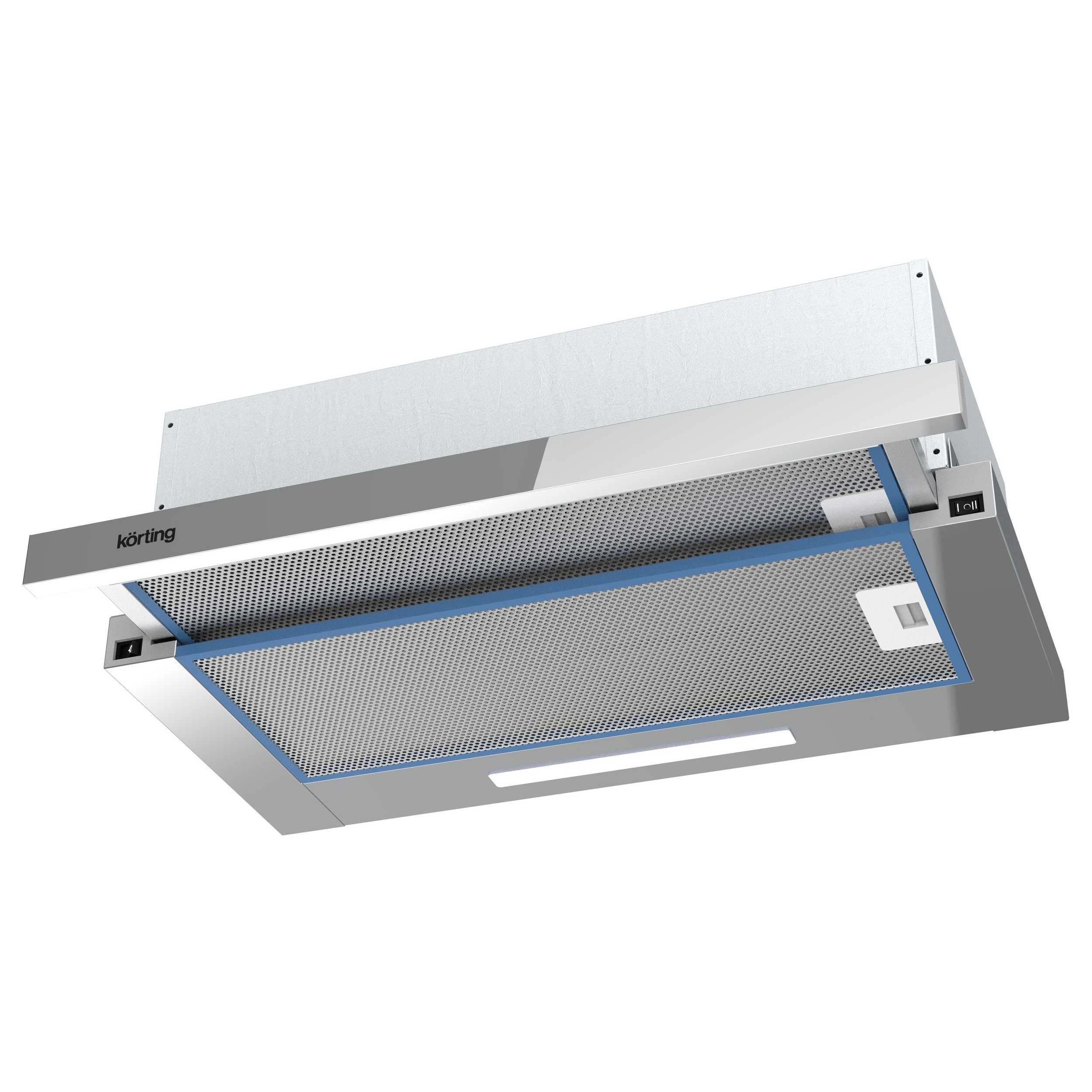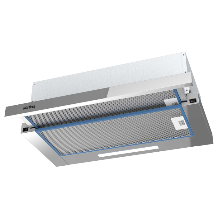 Встраиваемые в шкаф с выдвижным экраном. Встраиваемая с выдвижным экраном, ширина 60 см, мощность 550 м3/ч., 2 режима, механическое (клавишное) управление, алюминиевый жировой фильтр, LED освещениe.