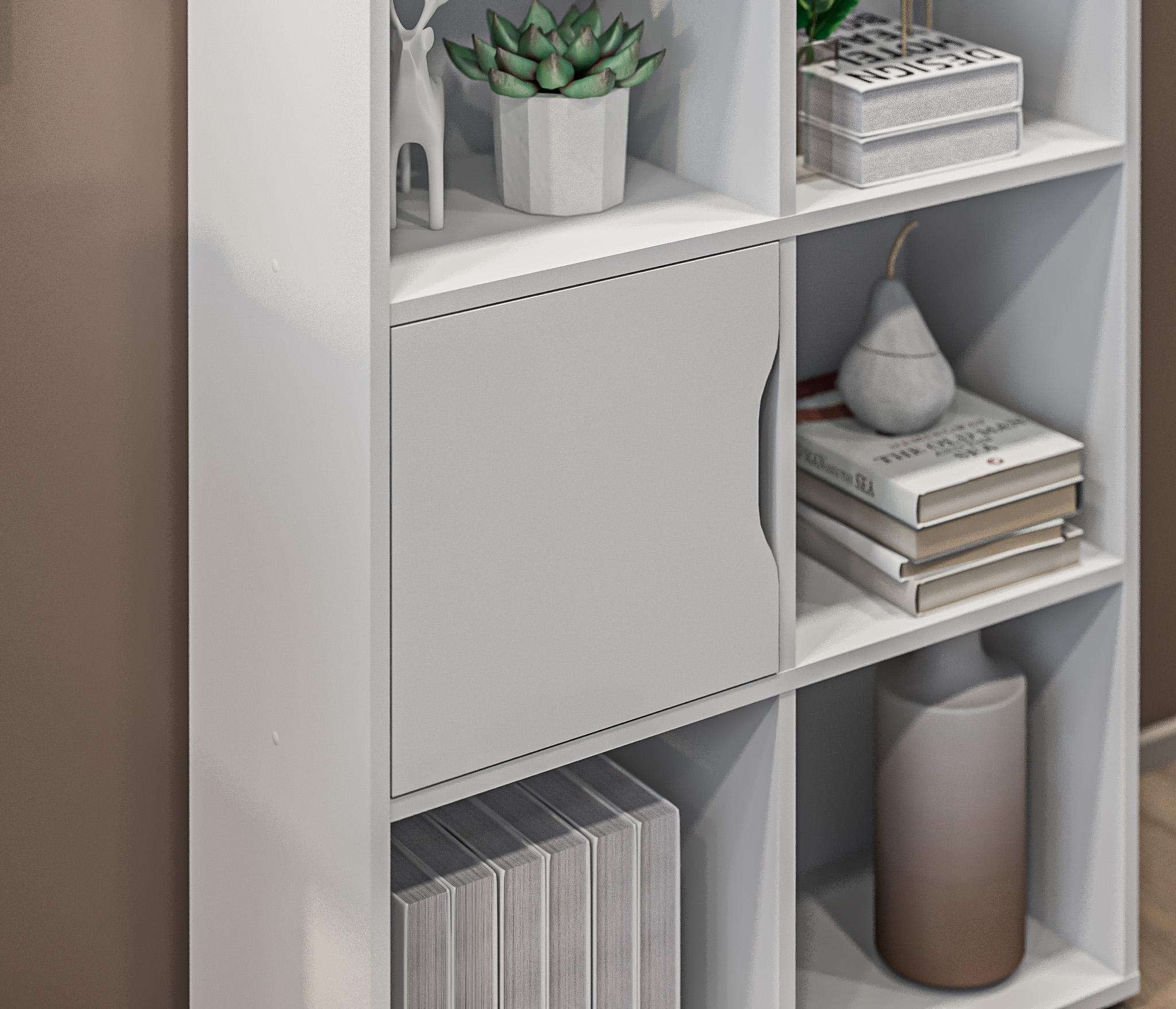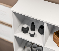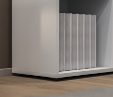 Стеллаж состоит из пяти ярусов и десяти полок, предлагая достаточно места для размещения книг, декоративных предметов, файлов и других вещей. Из этих десяти полок две закрыты дверцами, что позволяет вам хранить предметы вне прямого обзора и обеспечивает защиту от пыли и внешних воздействий.
