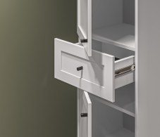 Продуманные детали делают использование стеллажа максимально удобным: шариковые направляющие обеспечивают плавное выдвижение ящика.