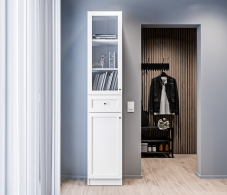 МС Твин предоставляет возможность собрать шкаф или стеллаж по своему вкусу. Вы сами выбираете размеры, цвет ручек: белый или черный, наполнение: ящик или полки. Помимо этого, вы можете решить, оставить фасады глухими или выбрать стеклянные, чтобы добавить прозрачности и легкости в ваш интерьер. Создайте шкаф-стеллаж, который идеально подходит для ваших потребностей и вписывается в ваш стиль.