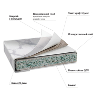 Основа – влагостойкое ДСП, толщиной 38 мм. Пластик толщиной 04-0,5 мм. Задний срез обработан меламиновой кромкой. Низ закрыт защитным покрытием бэкинг, которое защищает ДСП от влаги. Столешница оснащена уникальным каплесборником (специальная силиконовая накладка, монтируемая в паз на передней части столешницы снизу). Препятствует стеканию капель воды со столешницы на фасады и встроенную техник, расположен под углом 12,7 гр. Произведена на полностью автоматизированном немецком оборудовании. Поставляется в упаковке.
